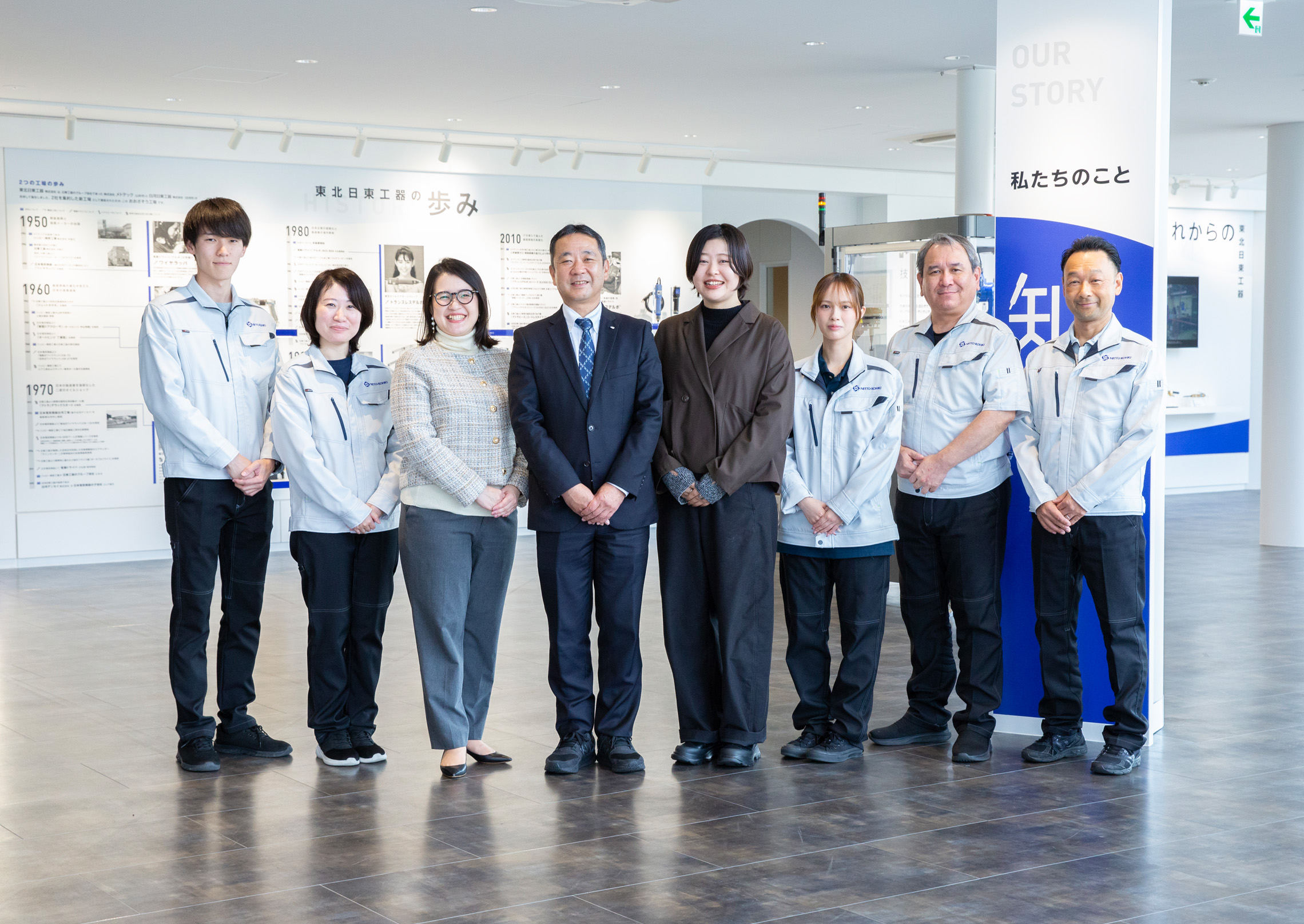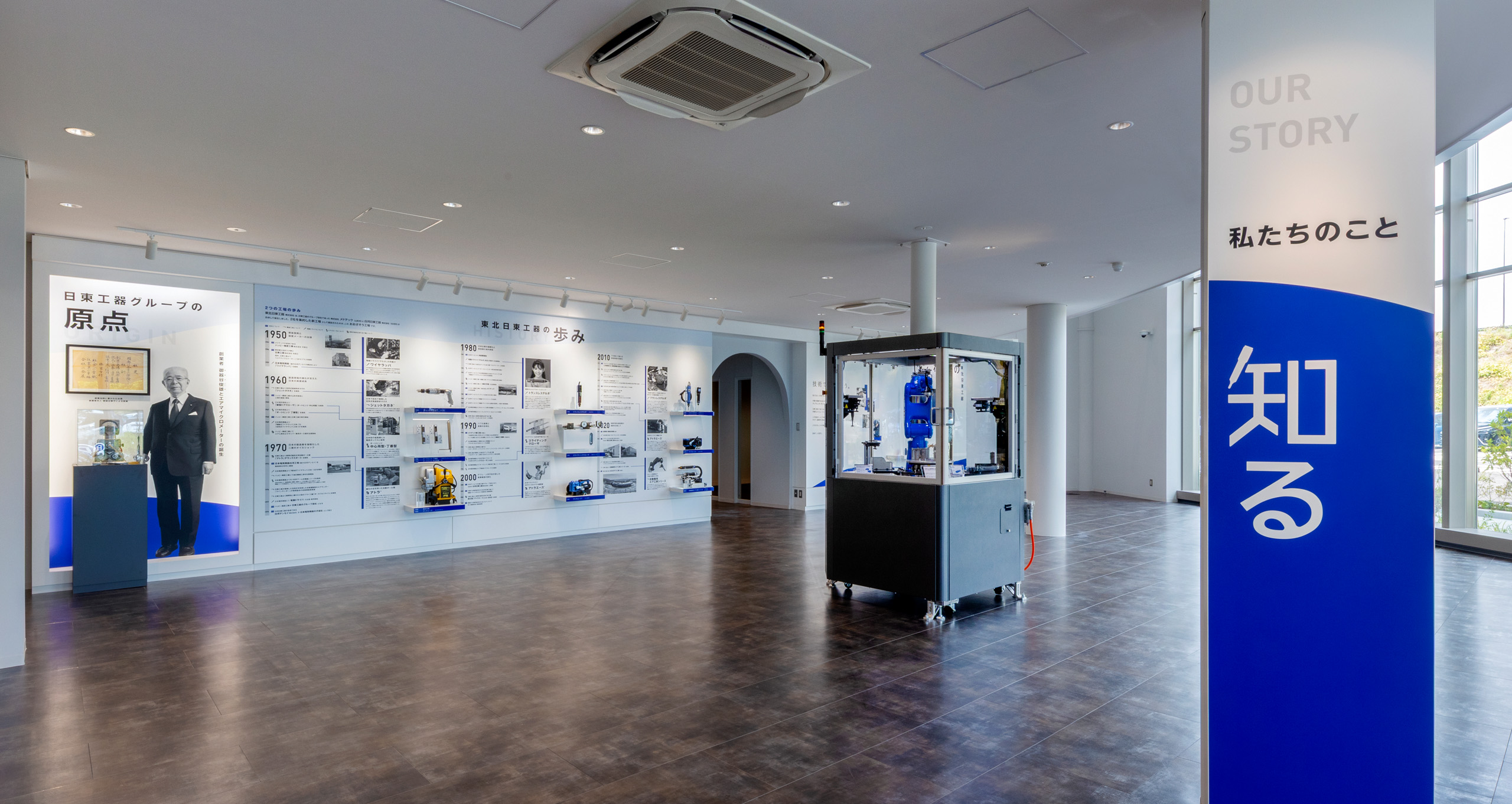 山形と白河、2つの拠点で培われてきた技術がおおざそうの地で融合し、新たなる一歩を踏み出した東北日東工器。従業員たちのモノづくりへの想いを伝えるこのショールームは、地域の新たなコミュニケーションの場となり、歴史と未来をつないでいく。