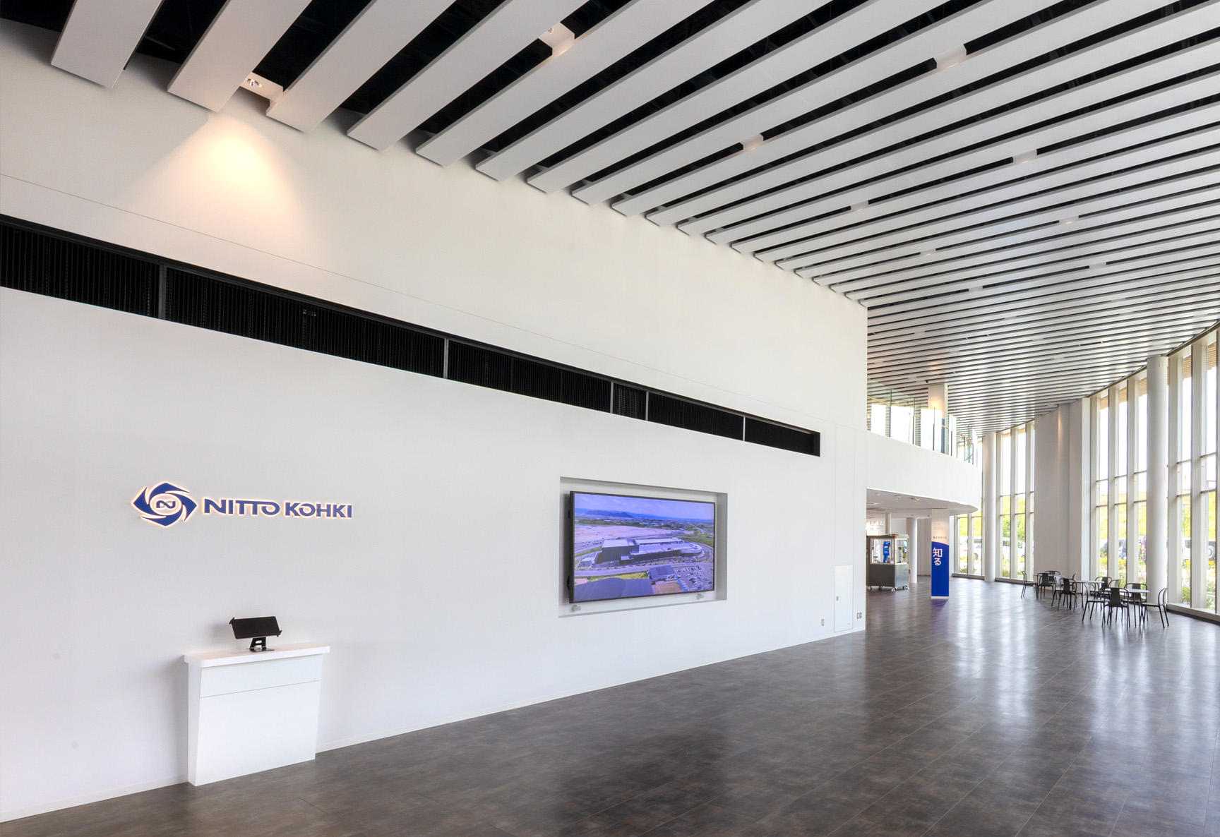 2024年に株式会社メドテック(山形県山形市)と白河日東工器株式会社(福島県白河市)が合併し、東北日東工器株式会社として歩み始めた、その象徴となる「おおざそう工場」だ。機械工具や環状刃物などを製造していたメドテックと、ドアクローザ、電動ドライバなどを製造していた白河日東工器。両社が培ってきた技術力や生産ノウハウを結集し、その機能を集約した工場は、自然豊かな大笹生の地でひときわ目を引く存在となっている。