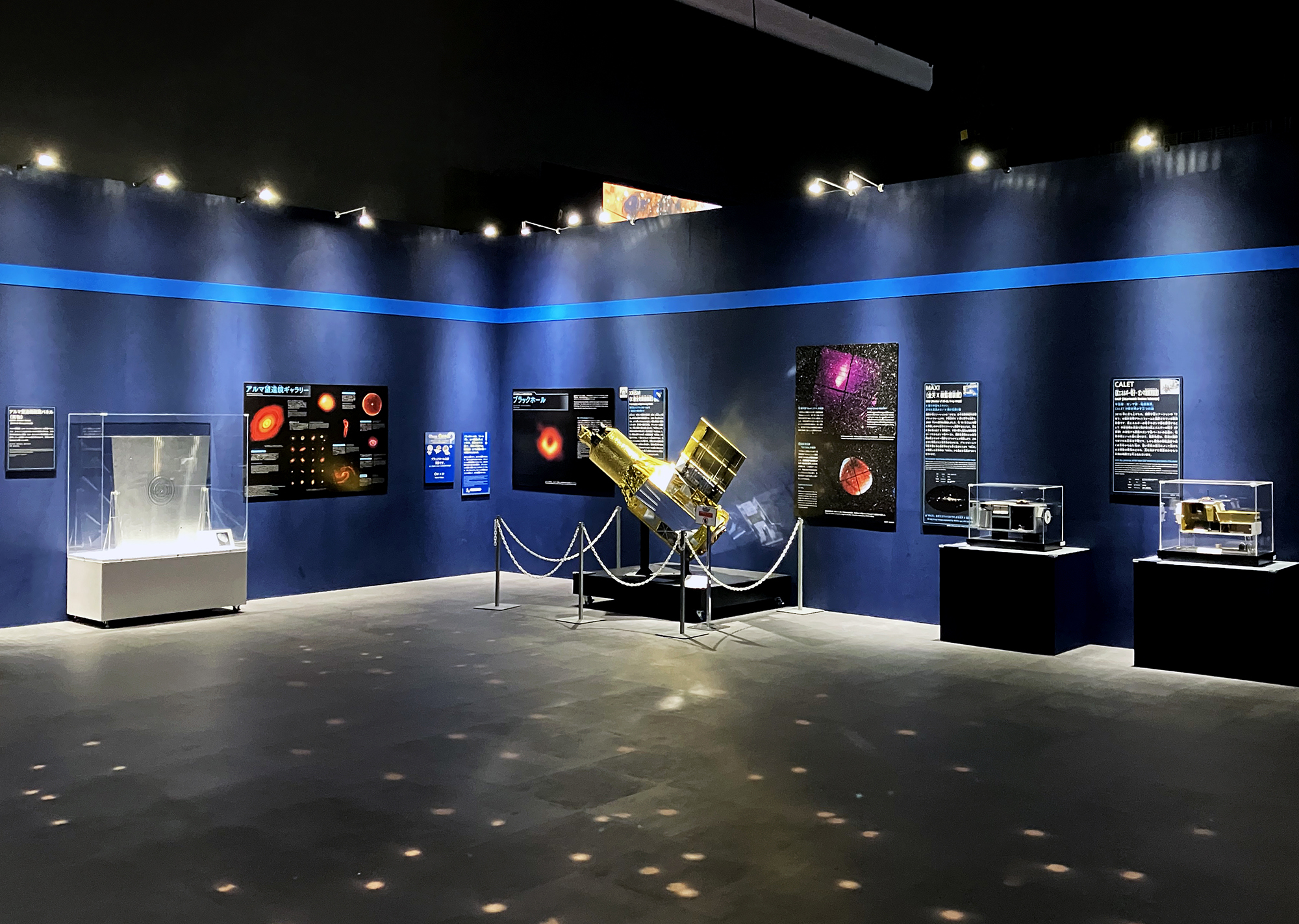 会場全体を宇宙空間に見立てた深いブルー色で構成し、子どもにも大人にも見やすくて分かりやすいグラフィック演出と展示演出を心掛け、会場づくりを行いました。