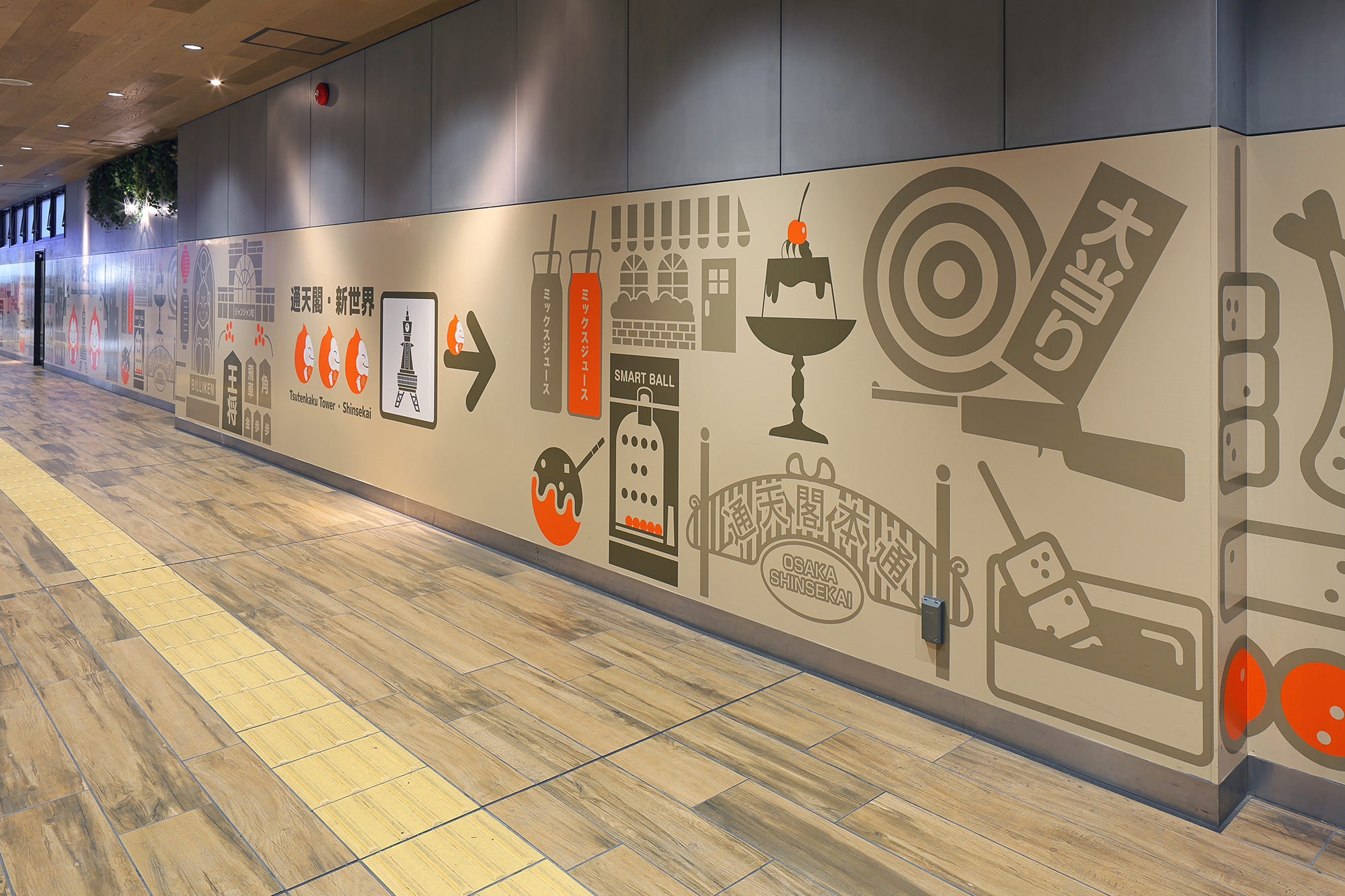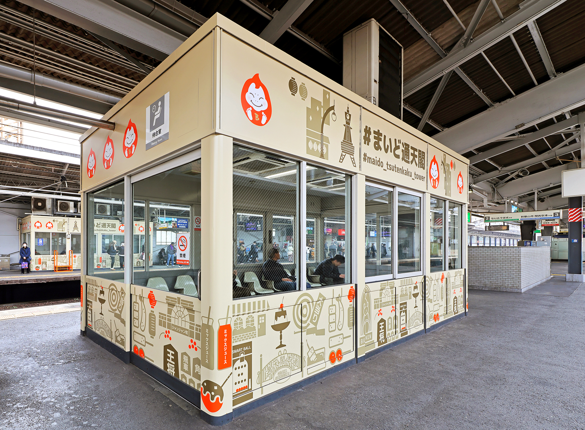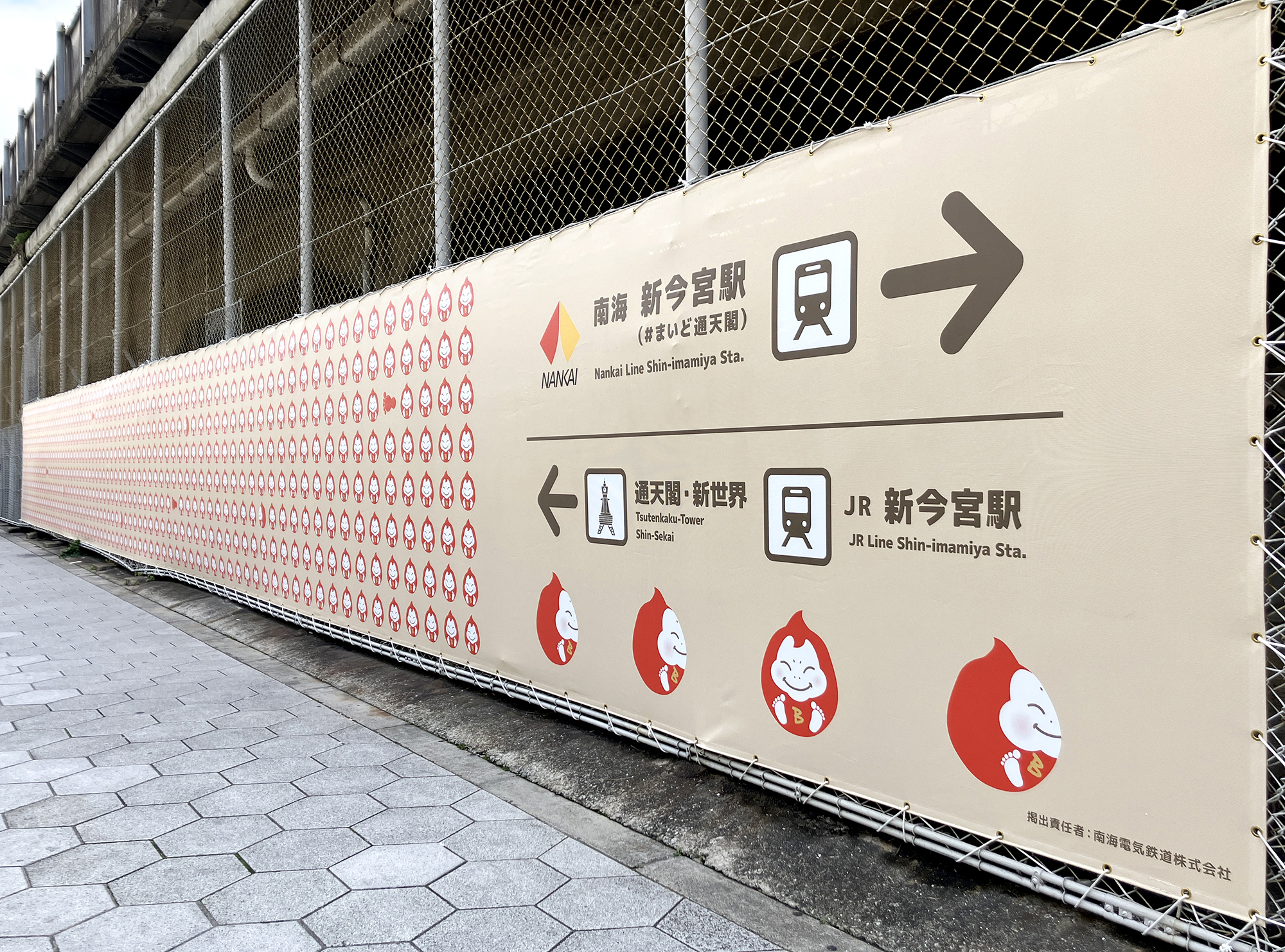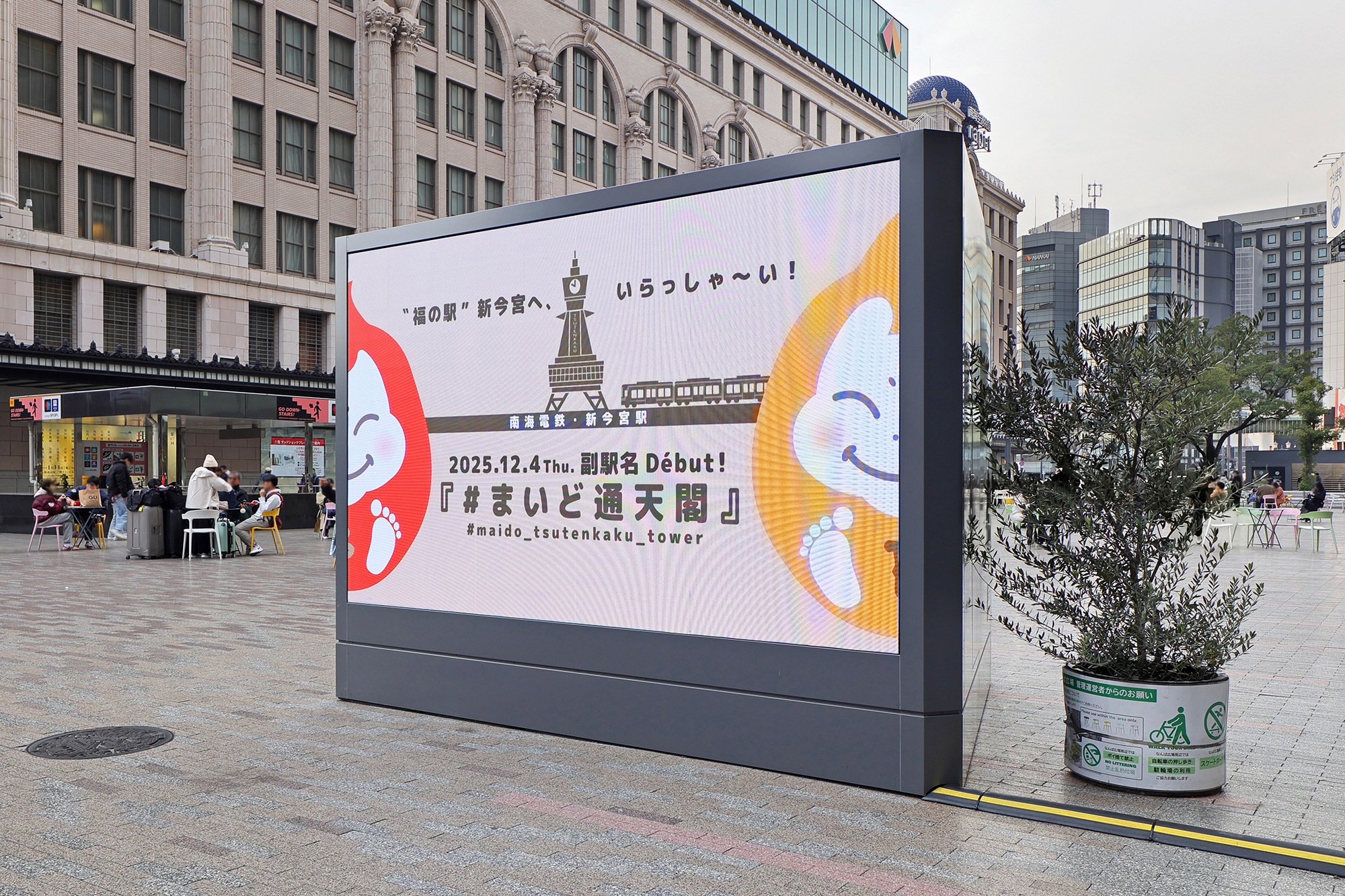 また、2025年12月4日から新今宮駅に導入された副駅名「#まいど通天閣」のプロモーションでは、通天閣への玄関口として新今宮駅を活用してもらうため、「ビリケンだるま」をモチーフにした装飾や動画広告等を展開。駅から通天閣へ向かうワクワク感を演出するとともに、お客様が通天閣へ迷わずに行くことができるよう視覚的に案内しています。